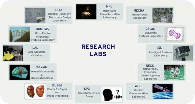 BUEE Faculty performs research in 9 major research areas of the Electrical and Electronics Engineering discipline. There are joint research efforts with companion departments in BU such as Industrial Engineering and Computer Engineering, as well with other universities such as Karlsruhe Institute of Technology University, Télécom ParisTech, Université de Lyon, Polytechnic University, Hiroshima University etc. The research efforts are funded by various sources such as state programs, TÜBİTAK, international programs such as COST, Framework Programs, and by the industry.